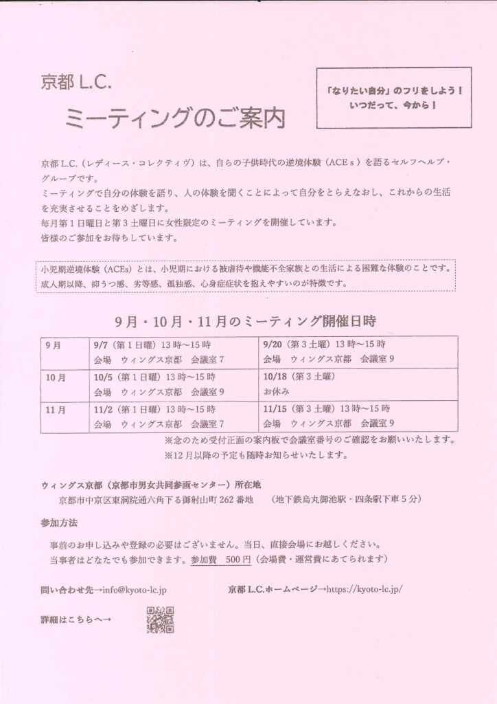 京都 L.C.(レディーズ・コレクティヴ) | 家族関係、小児期逆境体験、外傷体験、共依存