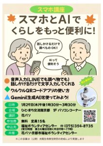 【下京区】スマホ講座 スマホとAIでくらしをもっと便利に!【1月29日(木)】