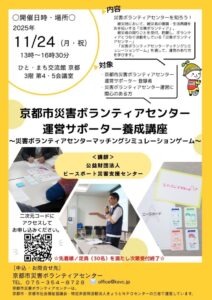 【下京区】京都市災害ボランティアセンター運営サポーター養成講座【11月24日(月・祝)】新着!!