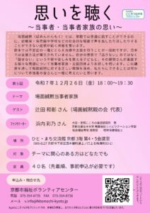 【下京区】思いを聴く~当事者・当事者家族の思い~【12月26日(金)18:00~19:30】新着!!