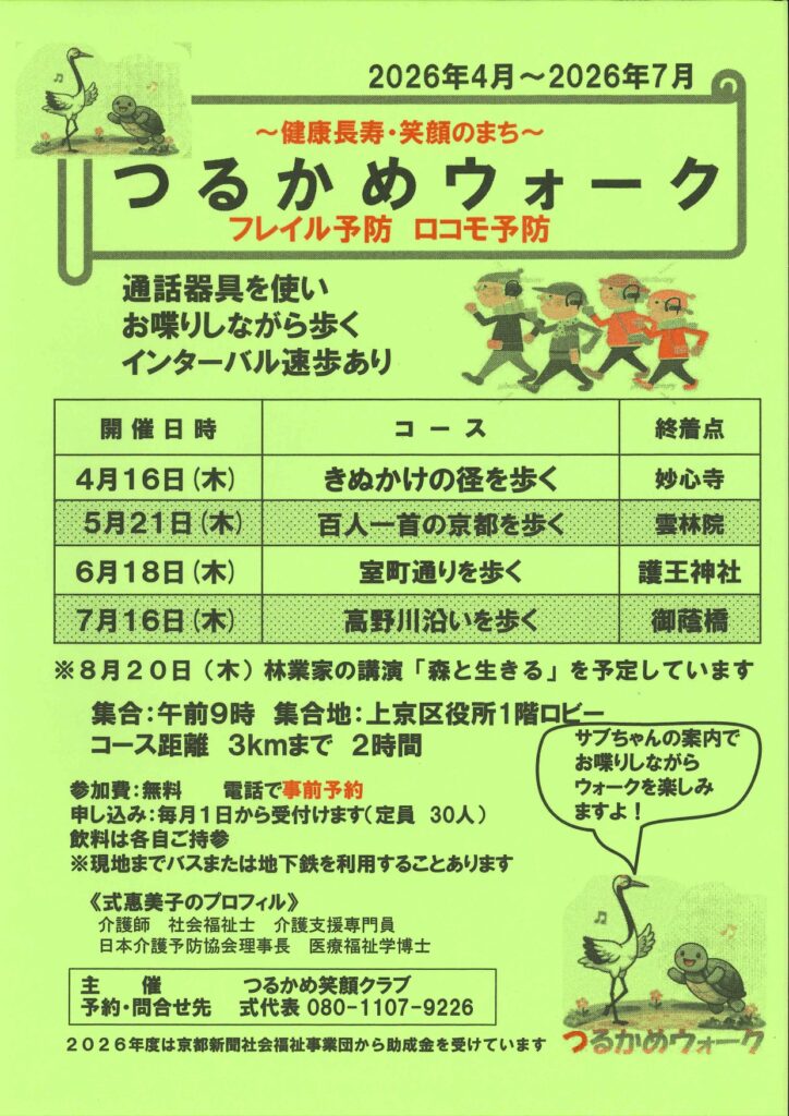 【上京区】~健康長寿・笑顔のまち~つるかめウォーク開催【4月16日(木)9:00~】