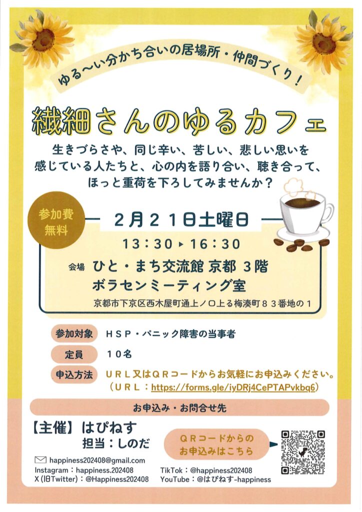 【下京区】ゆる~い分かち合いの居場所・仲間づくり【2月21日(土)】