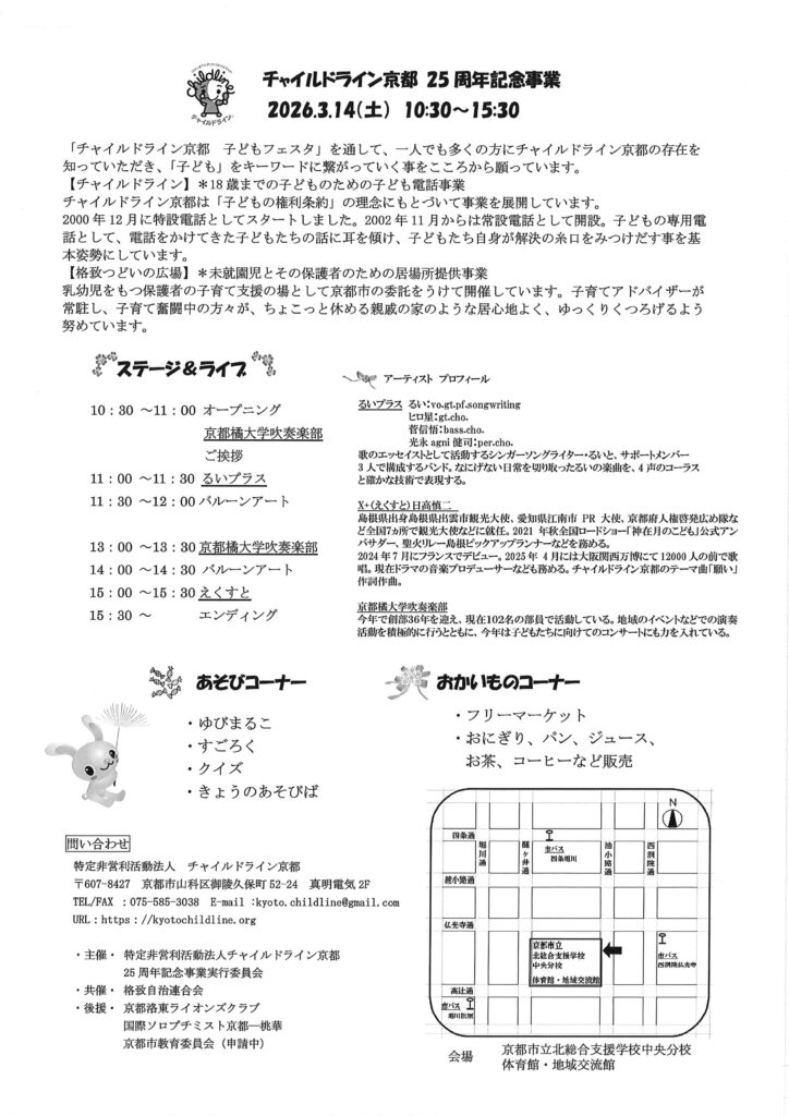 【下京区】チャイルドライン京都 25周年記念事業【3月14日(土)】