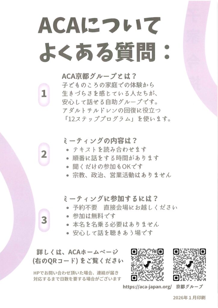 【下京区】アダルトチルドレン自助グループ【毎週月曜日】