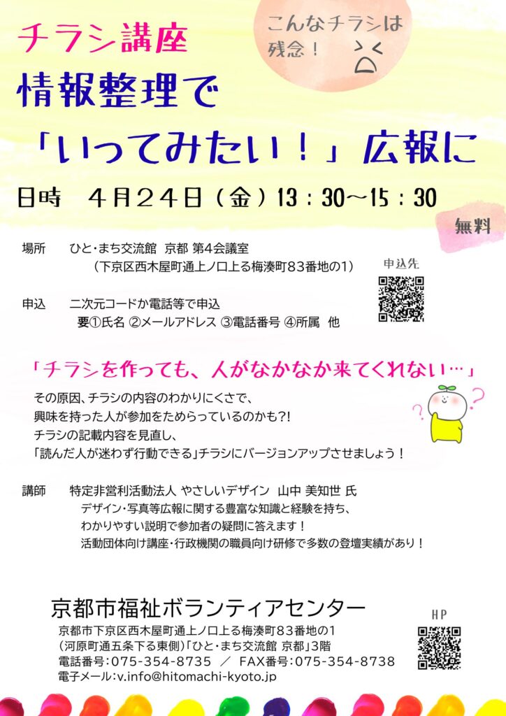【下京区】チラシ講座 情報整理で「いってみたい!」広報に【4月24日(金)】