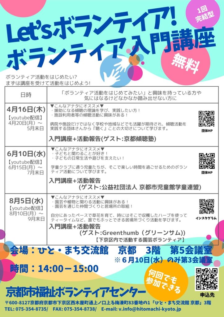 【下京区・オンライン】Let’sボランティア! ボランティア入門講座