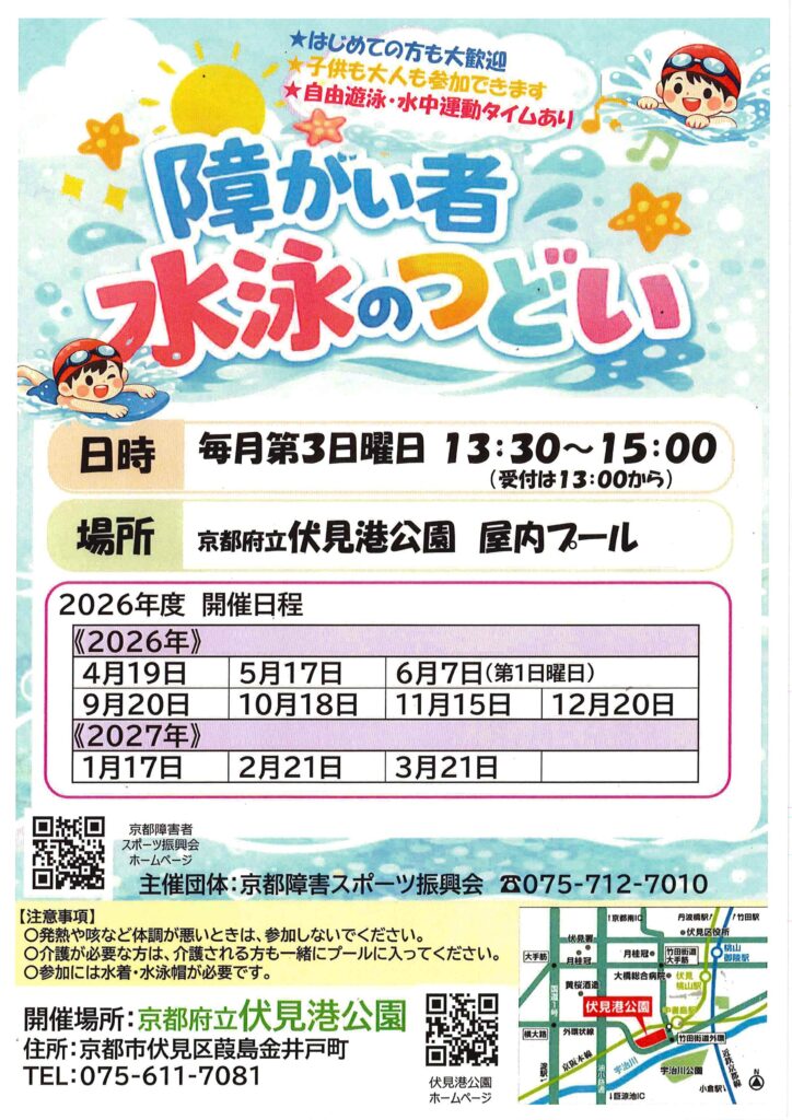 【伏見区】障がい者水泳のつどい【毎月第3日曜日】