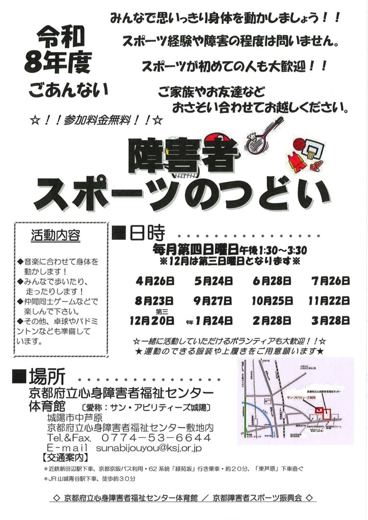 【城陽市】障がい者スポーツのつどい【毎月第4日曜日】