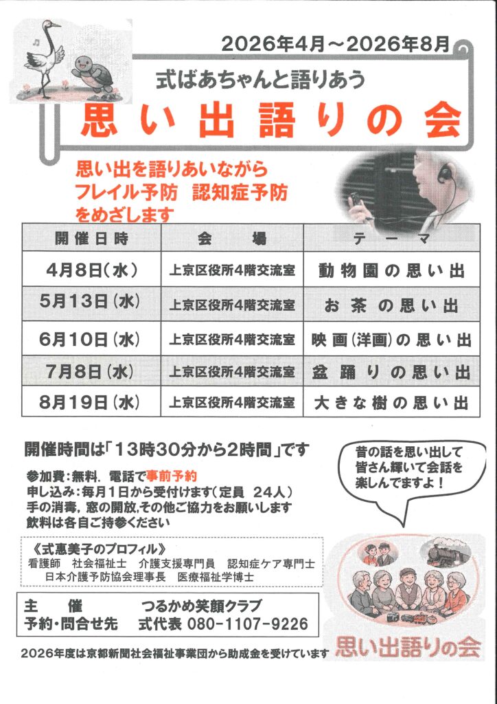 【上京区】式ばあちゃんと語り合う 思い出語りの会【5月13日(水)】