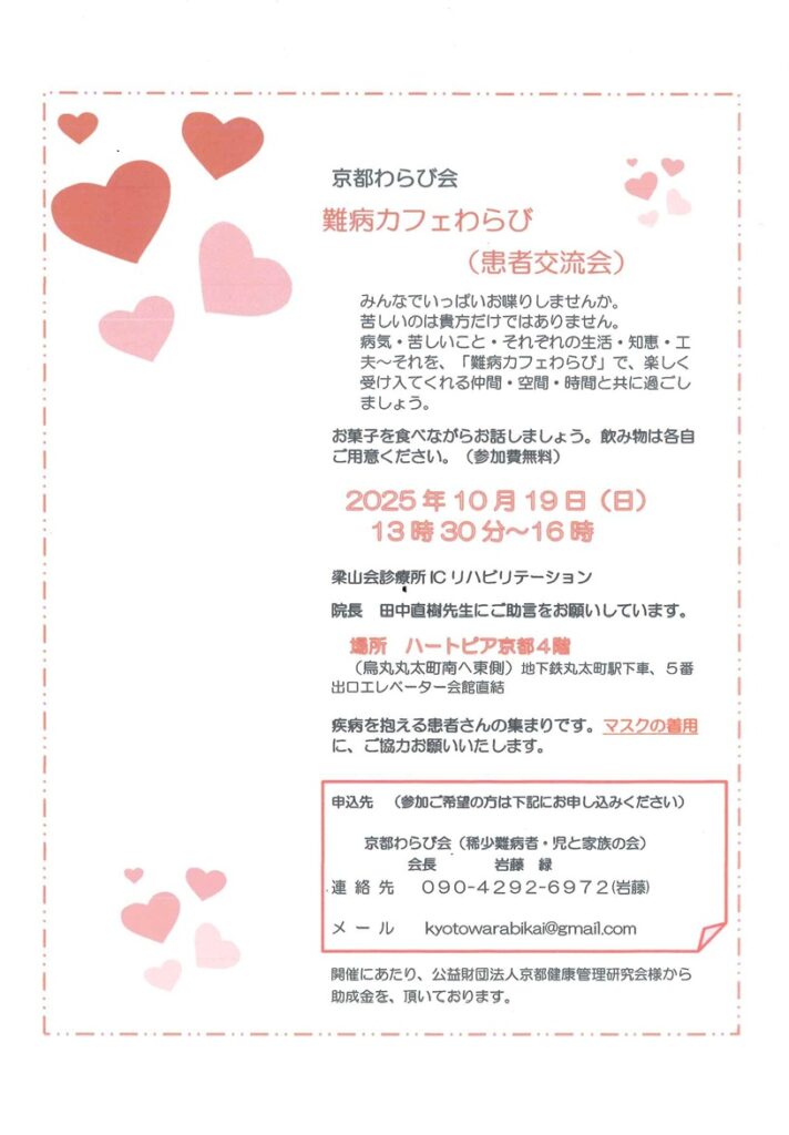 【上京区】難病カフェわらび~患者交流会~【10月19日(日)】