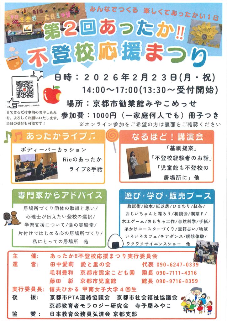 【左京区】第2回あったか!不登校応援まつり【2月23日(月・祝)】