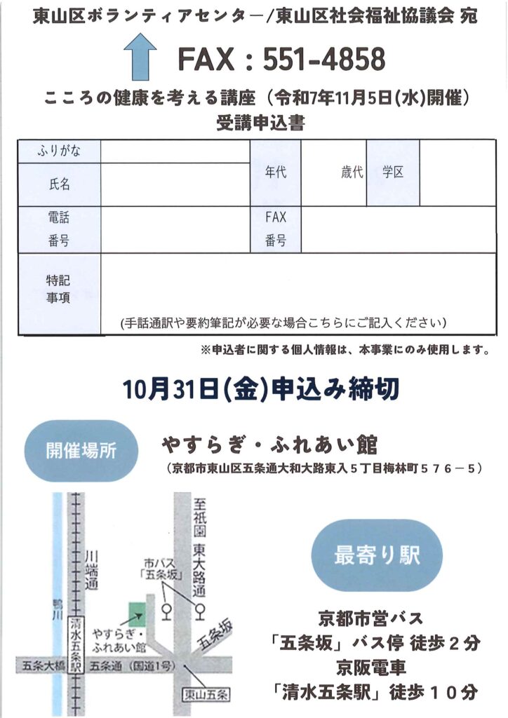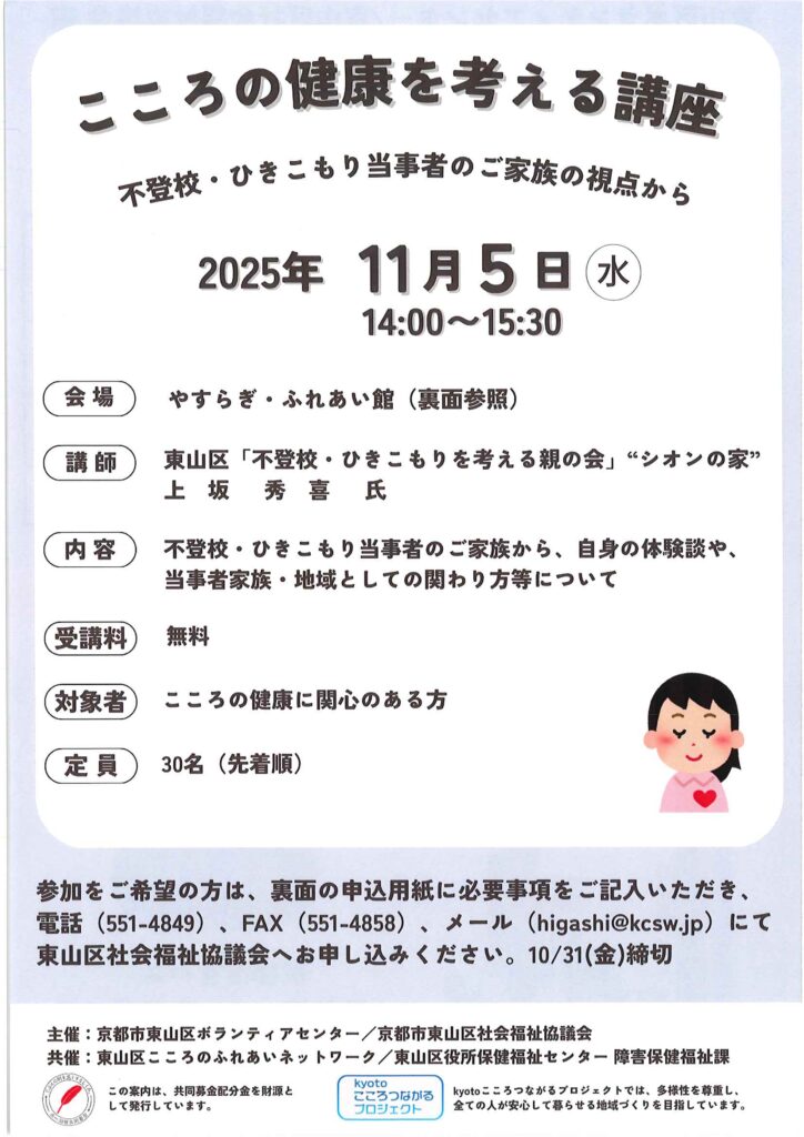 【東山区】こころの健康を考える講座【11月5日(水)】