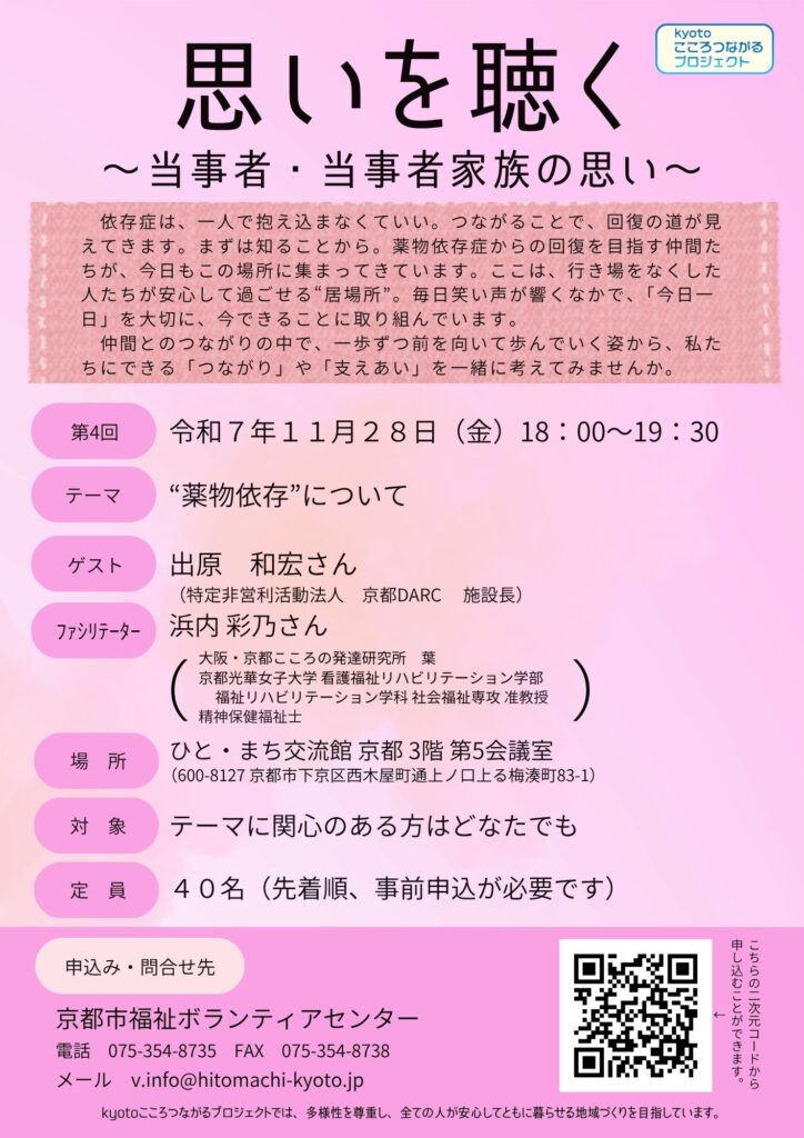 【下京区】思いを聴く~当事者・当事者家族の思い~【11月28日(金)18:00~19:30】