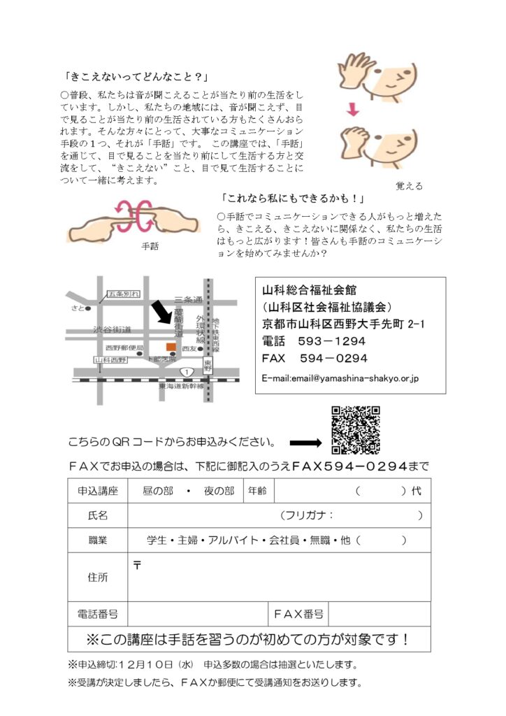 山科区在住、在学、在勤のいずれかで、全日程出席できる、手話をはじめて習う方