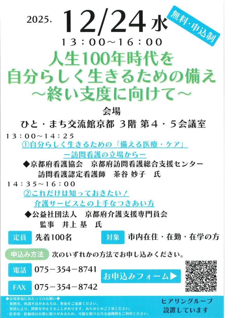 【下京区】人生100年時代を自分らしく生きるための備え ~終い支度に向けて~【12月24日(水)】