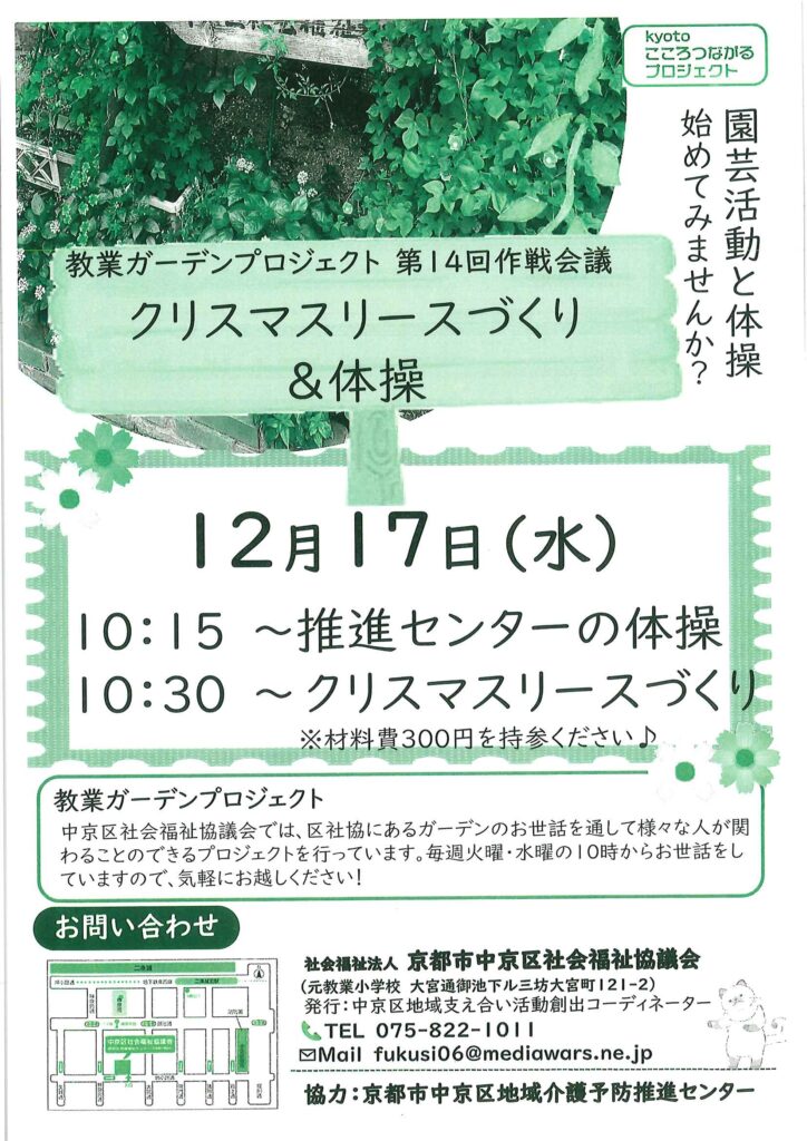 【中京区】クリスマスリースづくり&体操【12月17日(水)】