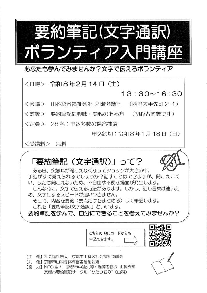 【山科区】要約筆記(文字通訳) ボランティア入門講座【2月14日(土)】