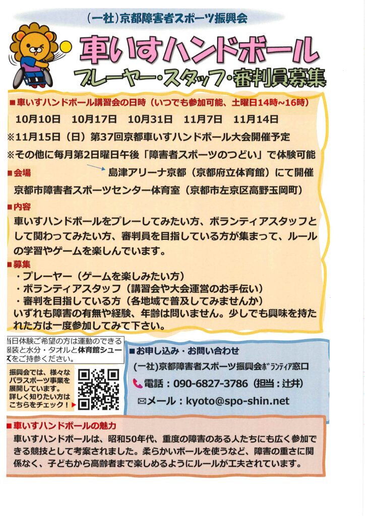 ※11月15日(日)第37回京都車いすハンドボール大会開催予定